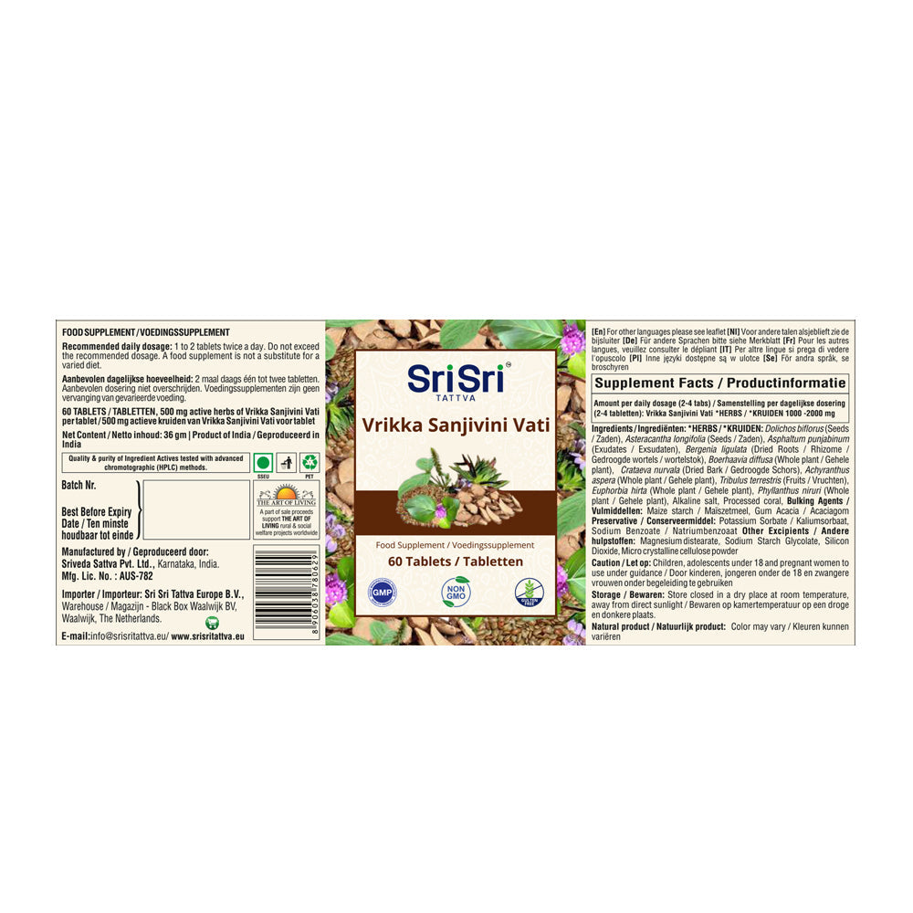 Sri Sri Tattva’s Vrikka Sanjivini Vati is made up of Ayurvedic traditional herbs which are grinded into powder and later on transformed into tablets. Vrikka Sanjivini Vati is one of our leading products prepared by Ayuvedic procedures to the best interest of our customers.